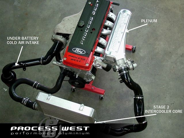 The Process West Stage 2 Front Mount Intercooler Core for the Ford BA/BF Falcon is a 500 x 360 x 80mm bar & plate core, with hi-flow polished aluminium end tanks. This allows for smooth flow and effective cooling of the charge air entering the engine.