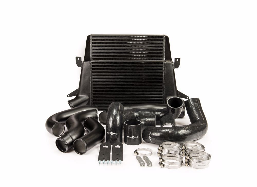 The intercooler core is available in both black powdercoated or silver finish