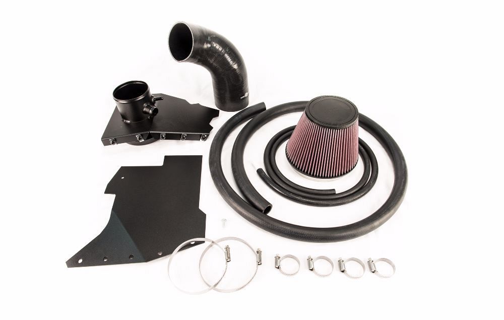 The air box uses a massive 6in internal diameter K&N filter which mounts onto a 6in to 4in bell mouth which connects to a internally wire re-enforced molded silicon hose down to the turbo. This combination gives maximum flow for power levels of 500rwkW+.